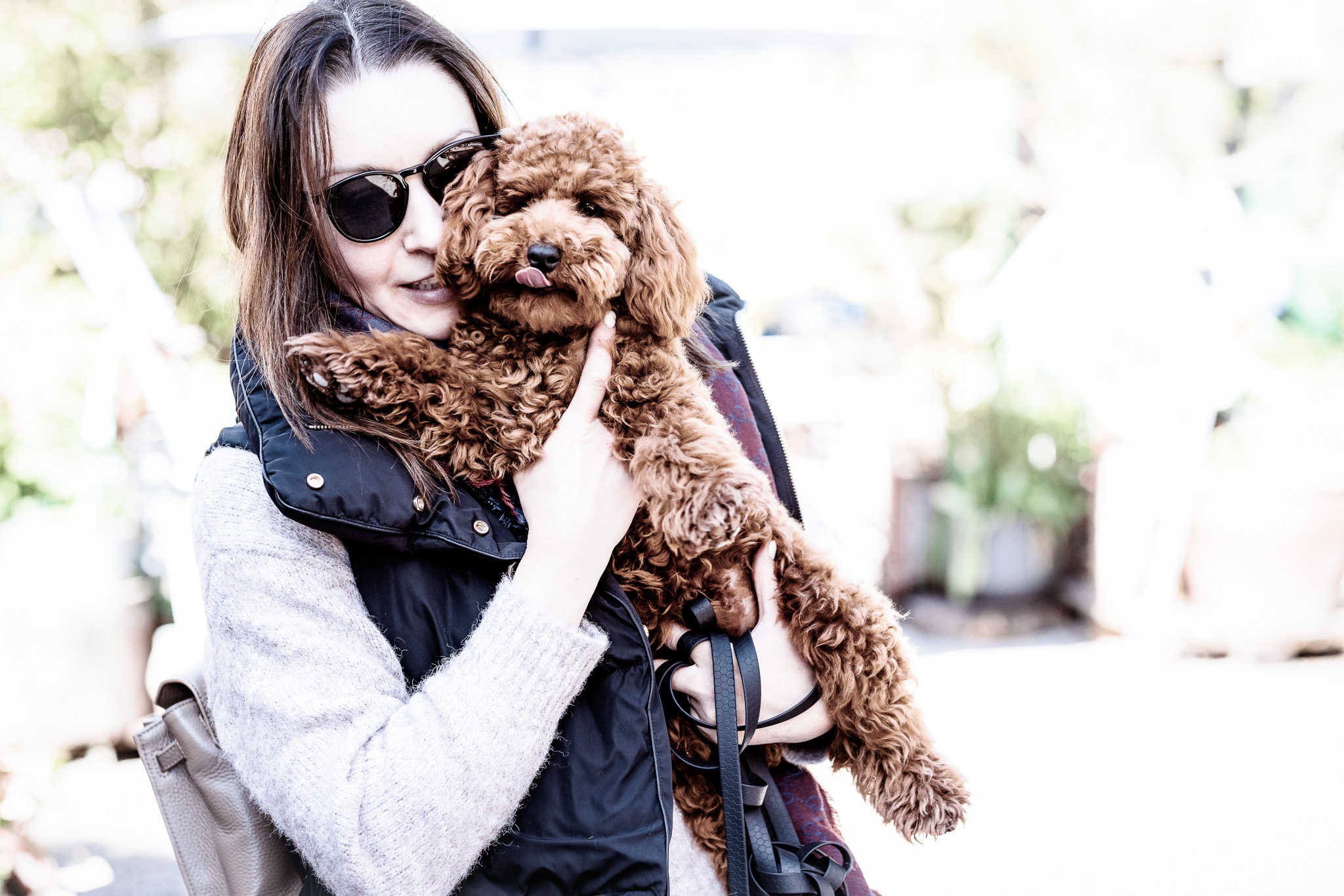 Puppy cuddling with owner during outdoor walk