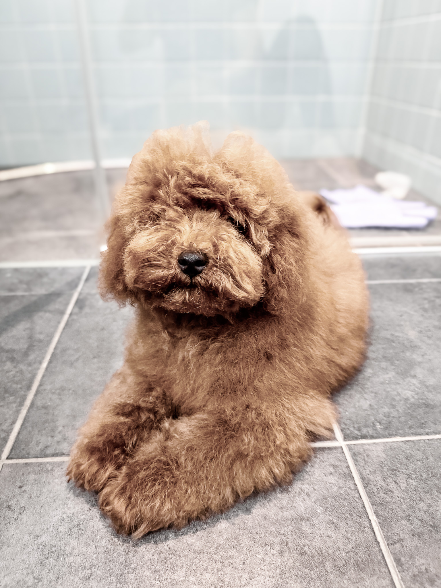 Puppy after bath with fluffy coat