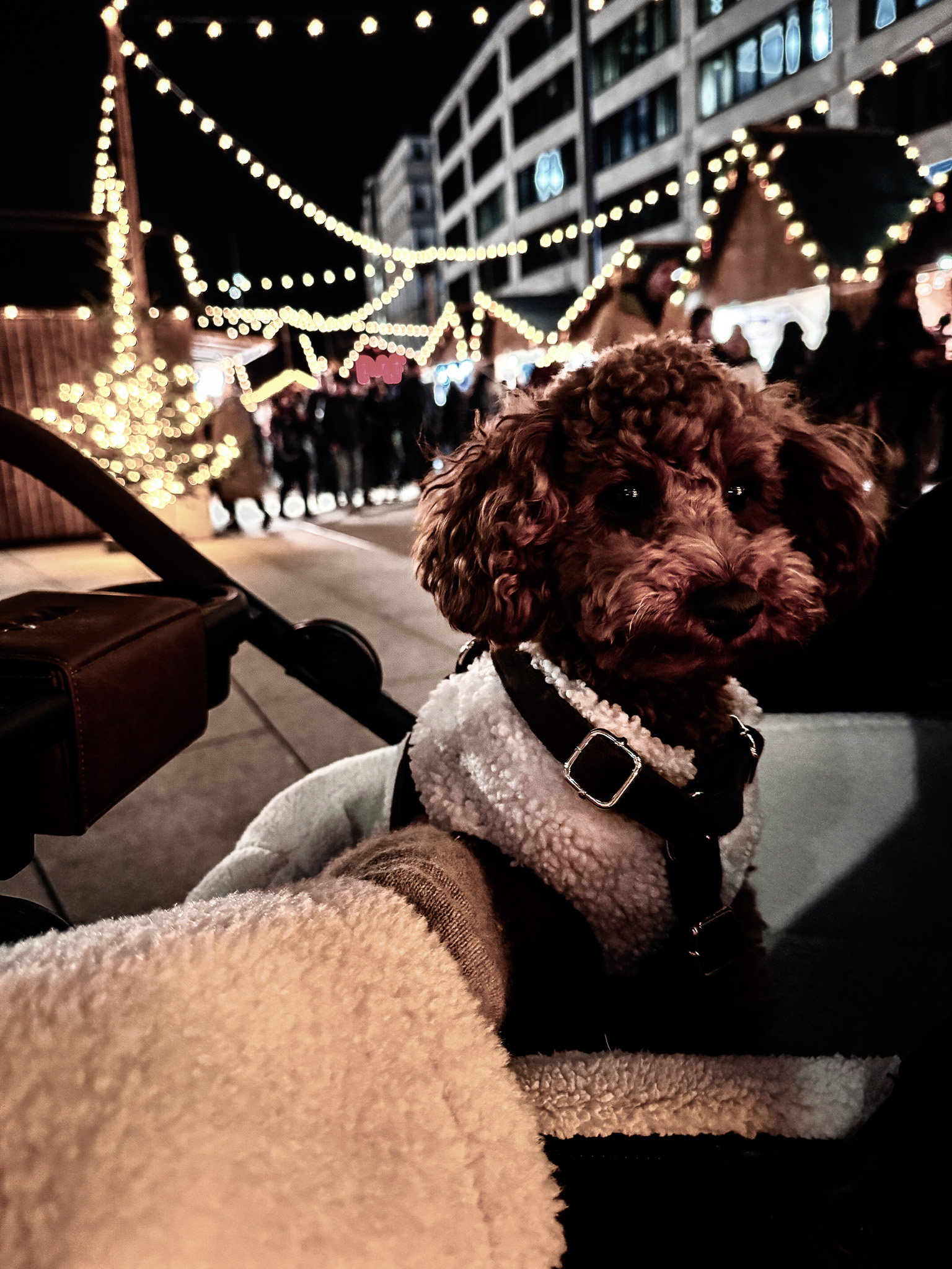 Toy Poodle Enjoying Zurich’s Weihnachtsallee Market