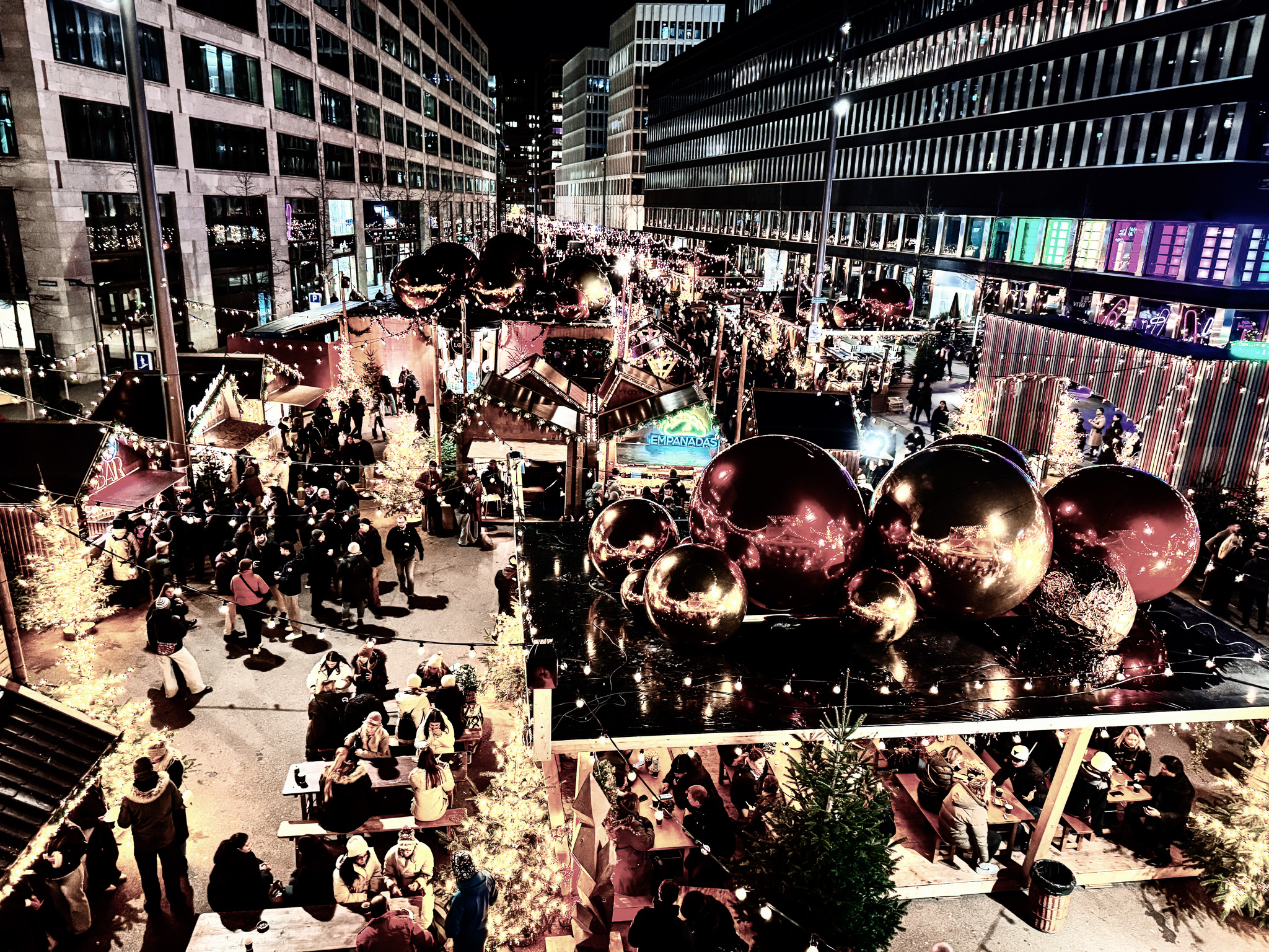 This bird’s-eye shot captures the joyful bustle of Zurich’s Weihnachtsallee Christmas Market. The combination of lights, crowds, and festive stalls makes it one of the city’s most photogenic seasonal destinations.